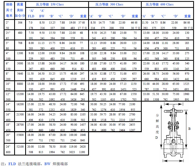 ● 壓力等級150#和300#,6 吋及以上規(guī)格采用柔性閥板