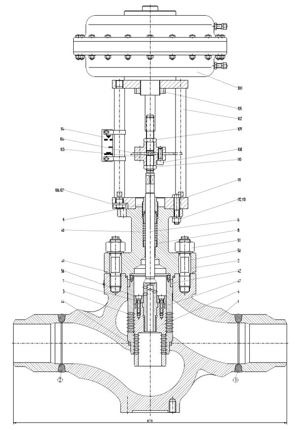 閥柱類型:多級(jí)節(jié)流系統(tǒng):穿孔籠和針孔閥柱